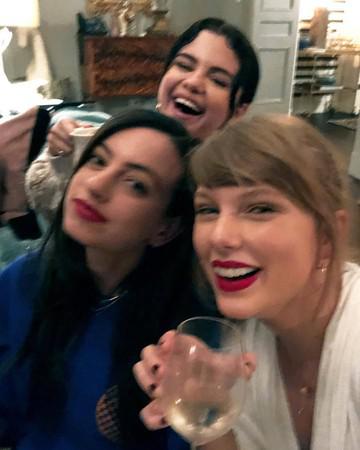 泰勒(右)久违晒出与赛琳娜(后)的私下同框合照