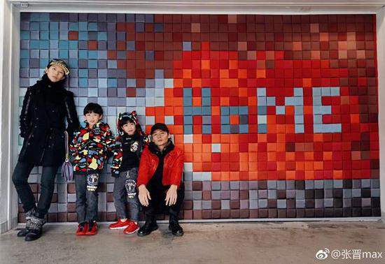 张晋晒一家四口合影 庆祝结婚11周年纪念日