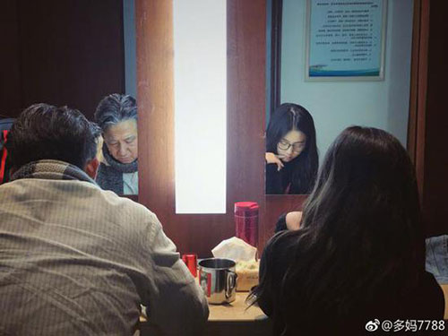 1月13日晚,孙莉通过微博晒黄磊和多多背影照,并写道:“后台,写剧本,读书!”照片中,黄磊坐在化妆台前低头看剧本,额头的头发花白,多多陪伴在侧,披着一头长发,一手托腮,认真看书