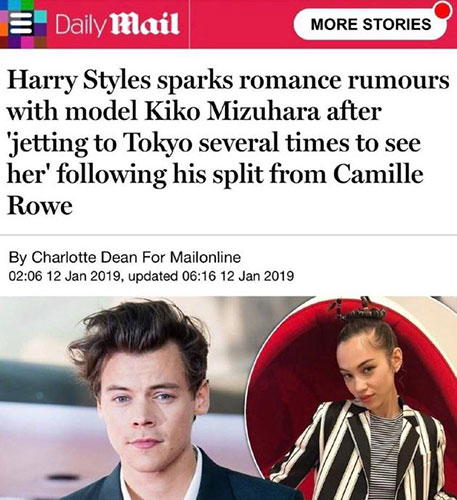 1月14日,水原希子发文辟谣与哈卷Harry Styles交往的传闻,水原表示“和Harry先生没有交往,一次也没见过”,并呼吁大家“这个世界到处都是假新闻,千万不要被媒体操控”。此前有报道称哈卷与水原希子疑似正在恋爱,俩人在社交平台上互粉后,关系引发关注,而最近几个月哈卷都有飞往东京与水原希子约会。