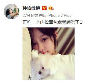 8月3日凌晨一点多,孙怡微博晒出一张自拍美照,并附文:“再吃一个肉松面包我就睡觉了”,原来是准妈妈半夜饿了起来加餐呀。