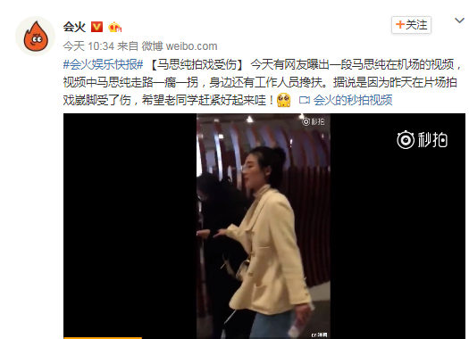 11月24日,有网友曝出一段马思纯现身机场的视频。视频里马思纯身穿白色大衣搭配蓝色宽松牛仔裤,看上去清纯又时尚,但是引人瞩目的是,马思纯全程被助理搀扶着,走起路来也是一瘸一拐的,据说是近日在片场拍戏时