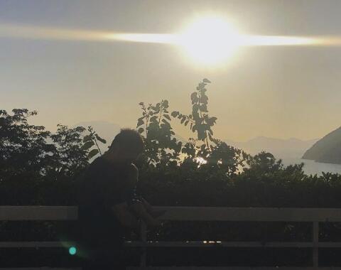 潮男变奶爸!余文乐抱儿子看日落 画面温馨有爱