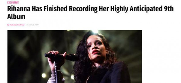 蕾哈娜新专辑制作完成 粉丝:终于想起副业了