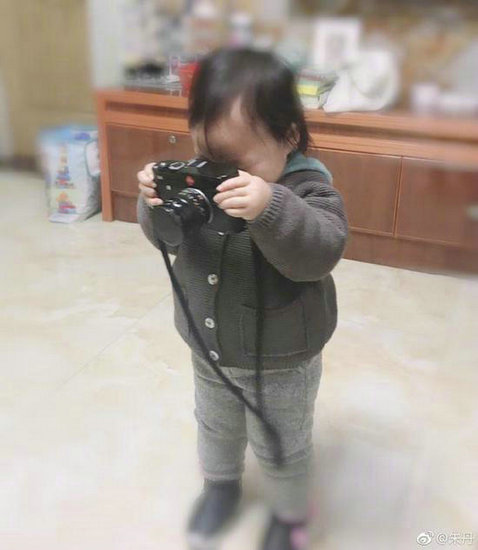 朱丹女儿拿相机模仿大人拍照 可爱十足萌翻网友