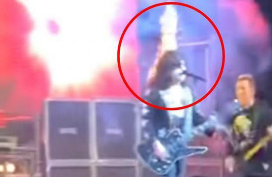 头发遭烟火特效点燃 乐团主唱仍淡定表演