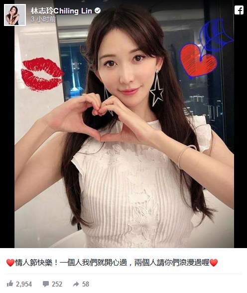 据台湾媒体报道,14日,林志玲在网上晒手比爱心的美照,她浓眉大眼和白皙美肌超冻龄,志玲姐姐还俏皮贴亲吻和爱心贴图,同时也应景写下:“情人节快乐!一个人我们就开心过,两个人请你们浪漫过喔”。