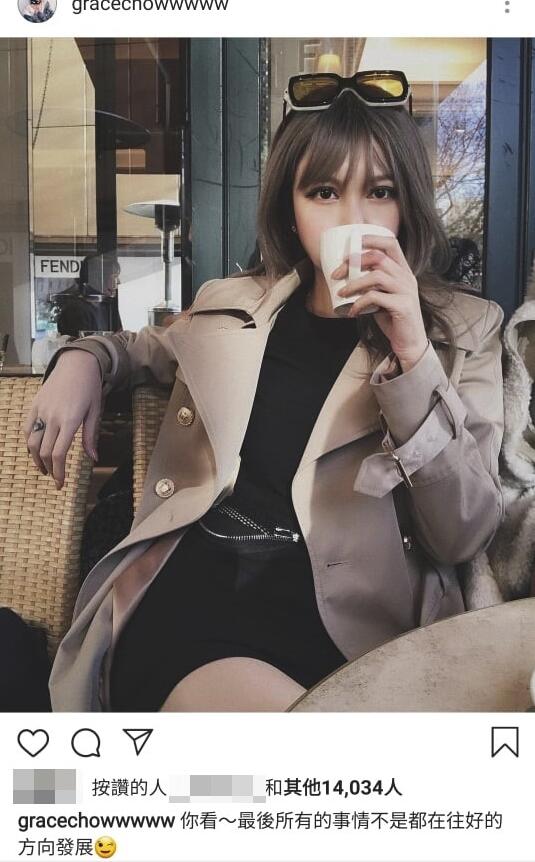 虽然周扬青这两天绝口不提该品牌,仍借由Instagram留言的方式,公开为罗志祥打气,19日晚间更发文:“你看~最后所有的事情不是都在往好的方向发展?”虽未点名,却令不少粉丝感动“小猪有你真好”、“你是全世界最会安慰人的了”、“感谢有周周陪在猪猪身边”。