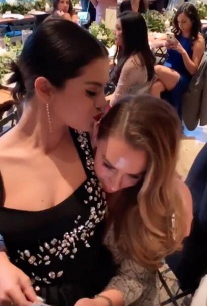 赛琳娜目前还没有在个人社交媒体上分享关于这场婚礼的任何东西。但从其他照片可以看出当天赛琳娜选择了一件优雅的黑色长袍,并且将头发梳成了圆滑的发髻。在一段视频中,还可以看到赛琳娜和好友在婚宴上一起享受着甜蜜的时光,她坐在了好朋友的膝盖上,并且亲吻着她的额头。