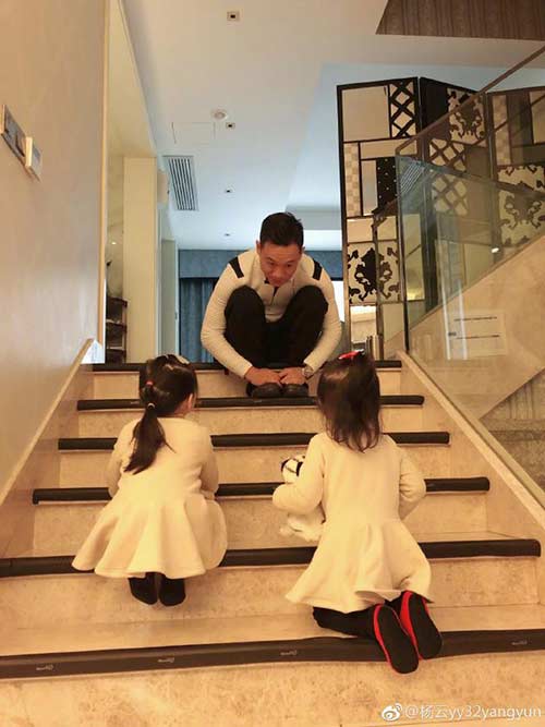 2月19日晚,杨云在微博晒出双胞胎女儿和杨威的互动照片,并配文称:“我有要求时,只用派她俩去谈判成功率高达100%。”照片中,女儿们身穿白色连衣裙,趴在楼梯口,似乎在跟爸爸说着