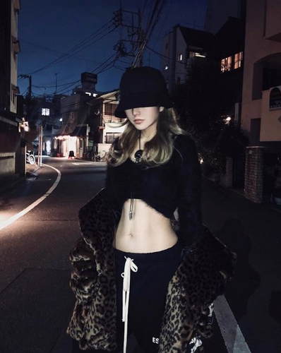 周扬青23日在IG发出自己的街拍照,只见她穿着全身黑,戴着黑色帽子,只露出脸的下半部,肩上则披着豹纹外套入镜,但她在大冬天,上半身只单穿短版黑色上衣,大方露出结实的腹肌,马甲线更是非常明显。