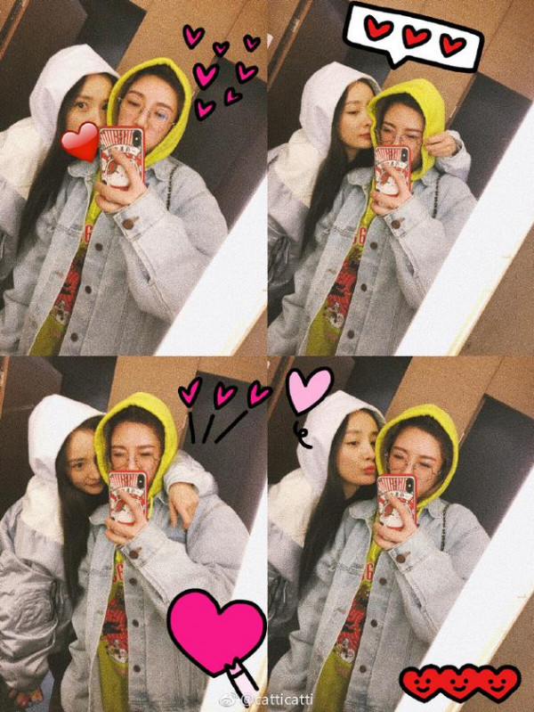 杨幂打扮休闲与闺蜜合影 彼此贴面亲亲超级甜