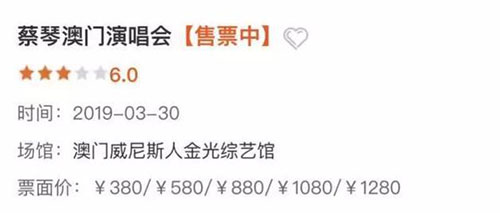 本月30日,蔡琴还将在澳门举办“蔡琴经典琴歌2019演唱会”,目前演唱会也是正常售票状态。