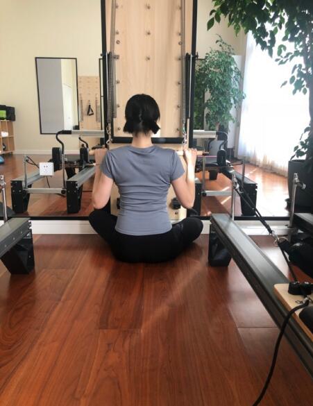 李艾跟着教练专心做孕产运动 四肢仍纤细状态十分好