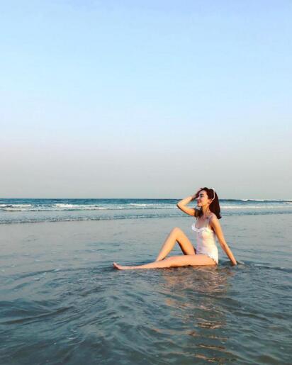 近日,林志颖妻子陈若仪在社交网站上晒出白色泳装照庆祝白色情人节。照片上的陈若仪身穿白色吊带泳装,侧身坐在蓝色的浅海海水中,披散着黑色长发,右手扶着太阳镜甜笑,身材凹凸有致,大秀美腿。