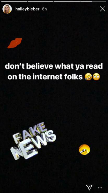 3月18日,海莉·鲍德温突然出现在她的社交网上,对所有关于她和她的丈夫贾斯汀·比伯婚姻出现严重问题的谣言做出了全面的回应,“不要相信你在网上看到的东西,伙计们”,她用一个大笑的表情符号和一个翻白眼的表情符号写道。此外,她还添加了一张“假新闻”。
