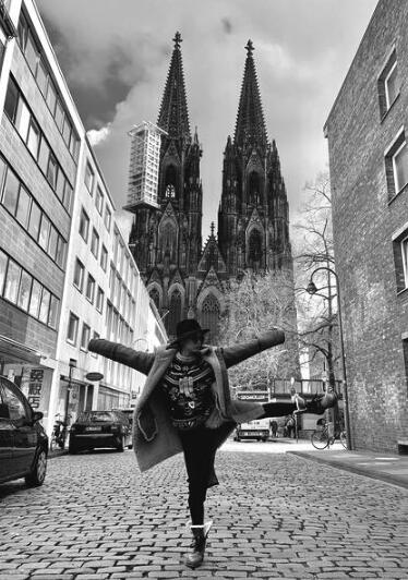 3月18日,昆凌社交网更新了一组在科隆大教堂前拍摄的美照,随后,周杰伦也晒出了一组同款照片,配文:“学你打卡”,照片中周董和昆凌身穿同款情侣装在同一地点打卡拍照。