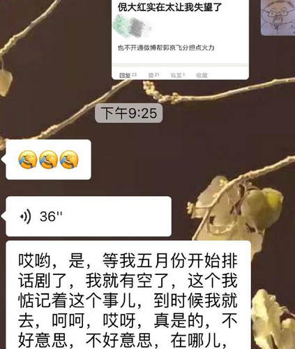 近段时间,家庭剧《都挺好》正在热映,剧中的各个点都触动着很多人的心,更为剧中人物的命运揪心。3月20日,编剧史航通过微博晒出一张和《都挺好》“苏大强”倪大红老师的截图。有网友调侃倪大红没有微博也不帮郭京飞分担点火力,倪大红老师看到截图后发了个捂脸的表情,还回复“等我五月份开始排话剧了,我就有空了,我惦记着这个事儿,到时候我就去。”