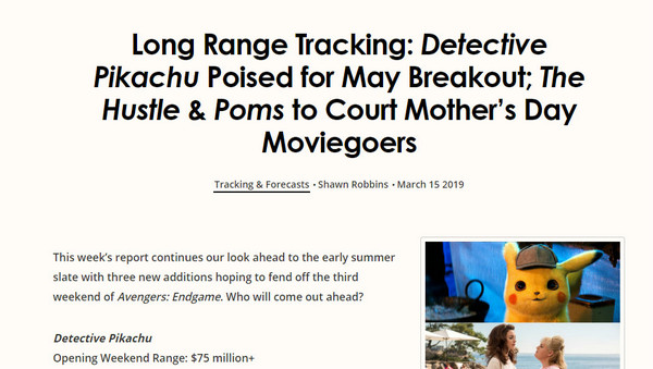 许多国外媒体,也都对电影《大侦探皮卡丘》的票房十分看好,认为该片会是今年春天的强势影片。