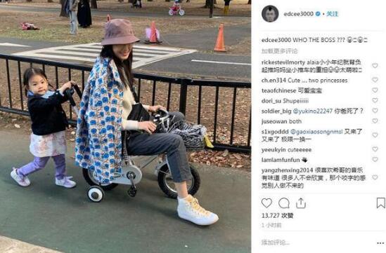 除了晒出照片,陈冠希还在社交账号上写道:who is the boss??不少网友纷纷表示:“你拍照、女儿推车,家庭地位已经很明显了。”