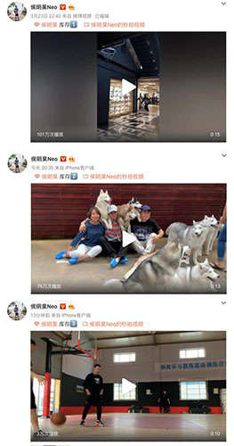 视频中,侯明昊一身运动套装在街边玩起篮球,帅气拉风地展示了一番上篮技巧。因在剧组拍戏很久没有打篮球,酷爱篮球的侯明昊还在评论中写道自己“很想篮球”,而许久没见过“动态小侯”的粉丝则激动留言:“兴奋到只会啊啊啊啊啊式追星”。随后两天,侯明昊晒出的库存视频均为自己的日常生活片段,充满邻家弟弟的阳光与亲切,真实的记录让大家看到他私下里大男孩一面。