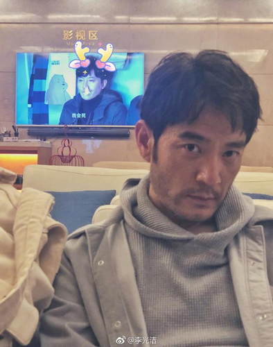 3月26日,李光洁通过微博晒出一张照片,配文:“纯偶遇,但我觉得你说的对!”照片中,李光洁头发略显凌乱,满脸胡须如硬汉大叔,身后电视屏幕上好兄弟“苏明成&rdquo