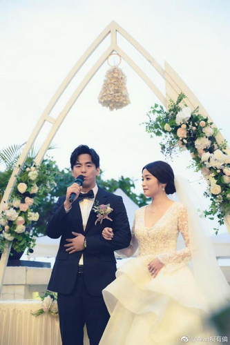柯有伦晒婚礼现场照片 与妻子挽手合影幸福甜蜜