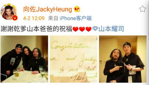 31日,向佐成功求婚郭碧婷后同游日本,今日,向佐又晒出一组带郭碧婷在日本拜访干爹山本耀司时的照片,感谢山本耀司祝福。