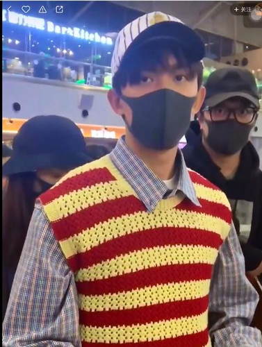 4月3日,吴磊亮相机场,他身穿格纹衬衫搭配红黄条纹毛衣背心,头戴鸭舌帽口罩遮面,送机人数众多人气颇高。现场不仅有女粉与他互动,更有男粉丝向三石弟弟大声表白“爱你哟磊磊,好爱你哟&rdquo