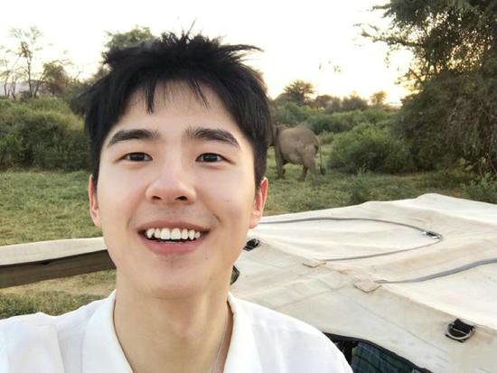 4月4日下午,刘昊然久违在微博晒出一张自拍照,照片中刘昊然穿着白色T恤,站在车上甜笑,露出两排大白牙,十分可爱帅气,身后还有一头大象,看样子是在非洲拍摄期间所拍。