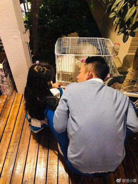 照片中,小玥儿坐在地上喂兔子,一头长长的头发,背影超萌,汪小菲蹲在女儿身旁,一脸溺爱的看着小玥儿,满满的父爱溢于言表,画面非常的温馨幸福。