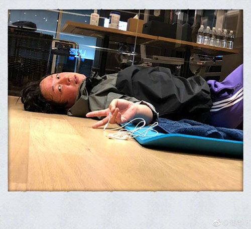 4月8日晚,潘粤明在微博晒出一张健身照,照片中潘粤明穿着运动服,一脸通红,头发完全汗湿了,躺在瑜伽垫上对镜头比耶,看样子是刚刚做完运动后拍摄的。潘粤明配文表示今天晚上要拍大夜,所以没有办法运动,&ld