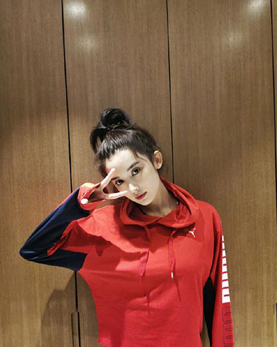 4月8日晚,娜扎在微博晒出一张照片,照片中娜扎穿着红色短款连帽卫衣,头发高高扎起,还举起手来对着镜头比耶,活力满满,很是元气。