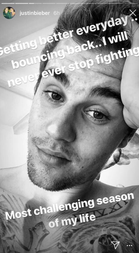 比伯晒照坦言正经历充满挑战的时光 向粉丝承诺会尽快振作