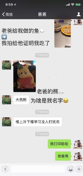郑爽近日晒出一张对话截图,是和爸爸郑成华聊天的内容。她拍下桌上料理,并在照片旁注明“老爸给我做的鱼,我拍给他证明我吃了。”原来是为了让爸爸放心自己有正常吃饭,所以拍照回报,父女