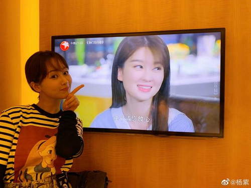 4月17日晚,杨紫通过微博晒与屏幕剧中的乔欣、张云龙的合影,并配文称:“看到了个熟人,乔欣,目光锁定you you you!! ps 还有支持我师哥张云龙,北电最帅。”照片中,杨紫穿着条纹T恤,对镜卖萌搞怪,和墙上电视里面的乔欣合影,一个俏皮一个甜美,两人以这种方式同框,惹来网友的围观,并留言称:“好走心的两姐妹合照!”“可真是姐妹情深啊,酸了!”“哇塞!两个大美女!”