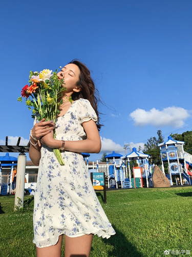 4月18日,张子萱在微博晒出一组美照,照片中的她身穿白底碎花短裙,在草地中奔跑,她手捧鲜花,皮肤水嫩白皙,长腿纤细,少女感十足。