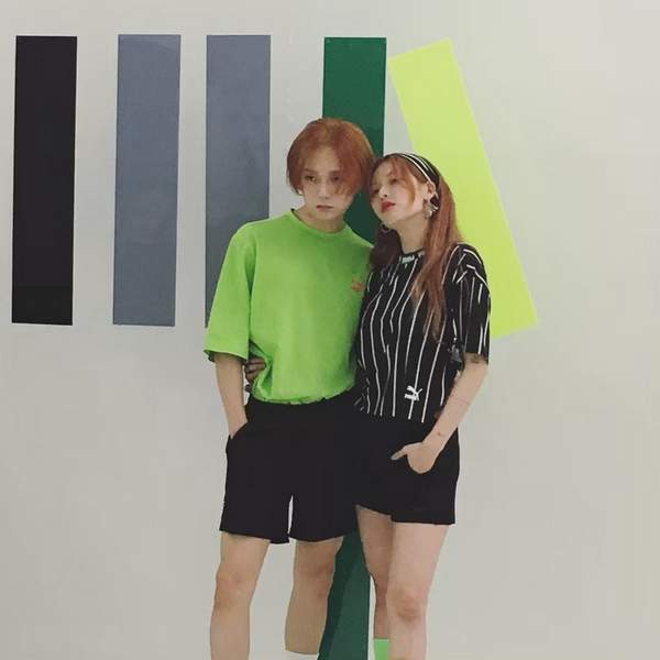 4月24日上午,泫雅在社交网站上晒出了自己与男友金晓钟合体拍摄广告的花絮照。两人身穿运动套装,泫雅则趴在男友膝盖上对着镜头摆出各种Pose,默契而又甜蜜。