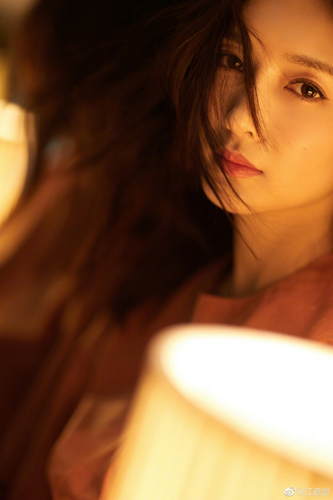 4月25日,江疏影在微博晒出一组美照,照片中的她身穿橘红色连衣裙,扎着腰带,对镜摆pose,美丽动人。