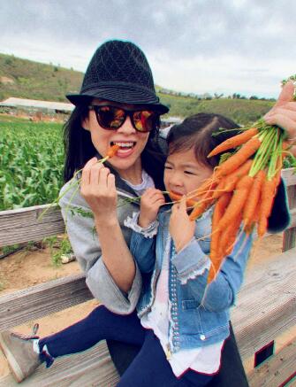 章子怡带女儿农场游玩 醒醒咬胡萝卜满脸抗拒