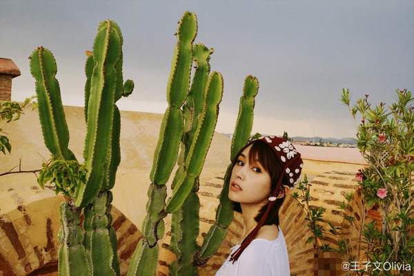 王子文晒摩洛哥美照 合影仙人掌小脸显娇俏