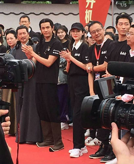 唐嫣新剧开机合作窦骁 一身黑衣满脸微笑状态好