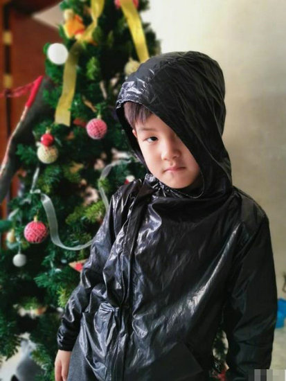4月30日凌晨,胡可分享与儿子小鱼儿的搞笑日常,称“鱼儿说,妈妈你怎么给我穿了个垃圾袋?!我竟有些无言以对......”只见照片中小鱼儿穿着酷炫的黑色皮衣,露出半张小脸表情“冷酷”十足。