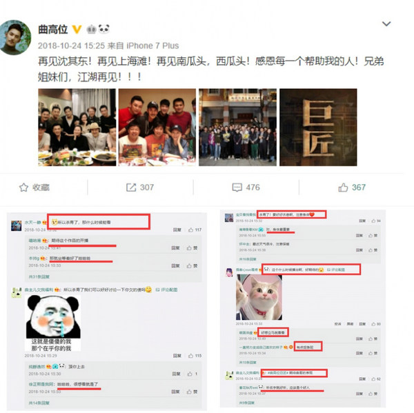 早在《筑梦情缘》杀青的时候,网友就对本剧的播出翘首以盼,纷纷在曲高位微博下面留言:“这个什么时候播出啊,好期待的”、“期待曲哥的表现”、“所以杀青了,什么时候能看”……还有网友大胆猜测沈其东阵营,留言称:“听名字就好听,应该是个好人”。