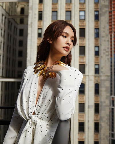 杨丞琳晒活动盛典美图 深V礼服秀事业线优雅性感