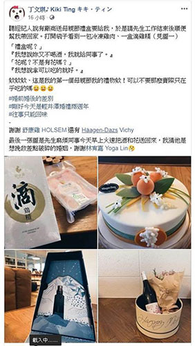 丁文琪在文末也指出,最后林宥嘉请同事把酒和花送回来“我猜他是想挽救差点破碎的婚姻”,最后说道“谢谢林宥嘉”。