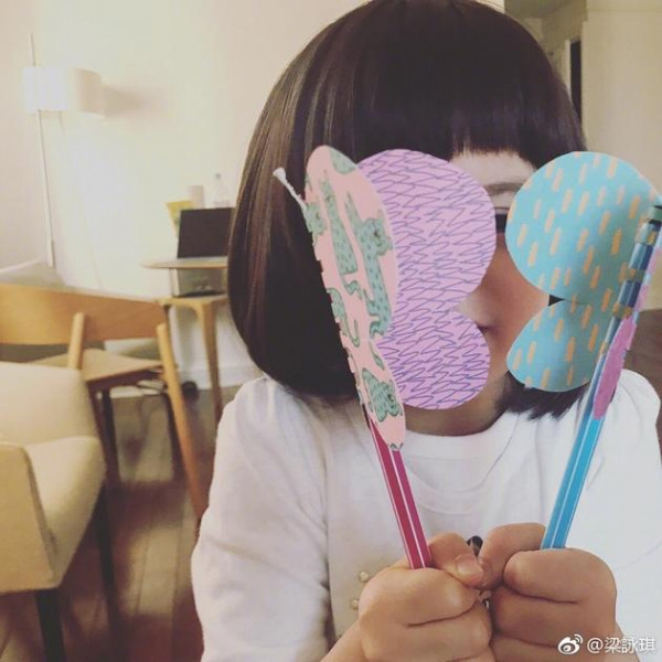 梁咏琪晒手工蝴蝶 女儿Sofia齐刘海可爱萌萌哒