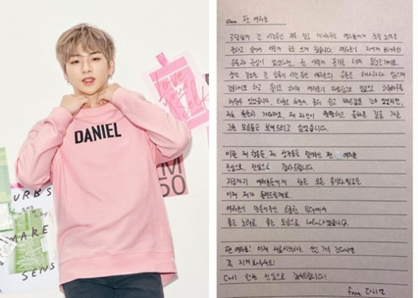 解约官司胜诉 姜丹尼尔晒亲笔信答谢粉丝
