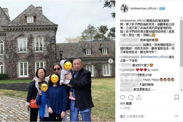 甘比晒一家五口合影据台湾媒体报道,财产千亿的香港富商刘銮雄可能要有麻烦了!最近港澳之间修订引渡条例,由于刘銮雄过去涉贿赂案,传其可能面临牢狱之灾,甚至开始分家产,对此提出司法审核自保,引发外界议论,而