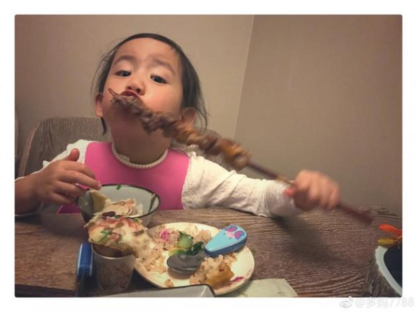 11月28日晚,孙莉通过微博晒多妹撸串的照片,并称:“我必须得撸串儿!”照片中,多妹坐在餐桌前,手里拿着串儿开心大吃,瞪着大眼小嘴撅得老高,表情夸张可爱,十足小吃货的模样。